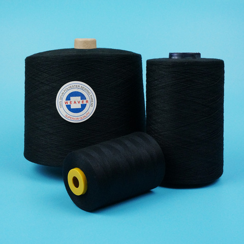 Hilo de coser de poliéster hilado 100% negro 42/2 en cono de papel